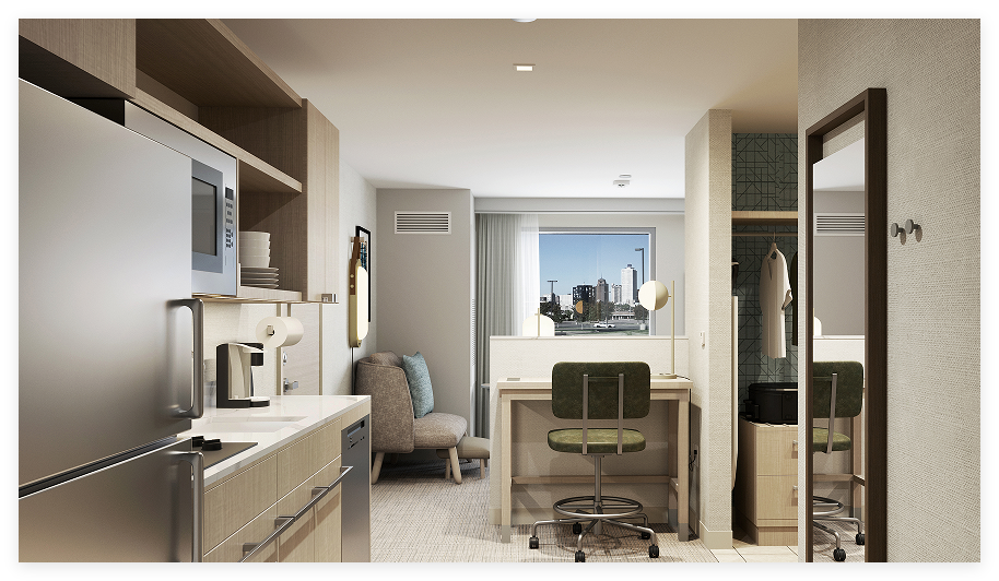 The room mix for the prototype will likely be 30 percent king efficiency, 65 percent studio and 5 percent one-bedroom.”However, those are guardrails,” Colling added. “If, in a market, you need queen-queen studio suites, we will afford the opportunity to do those and we'll work with owners.”