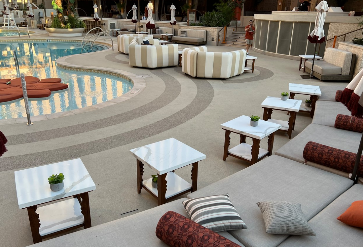 The newly reimagined TAO Beach Club, set against the iconic Venetian backdrop in Las Vegas, has redefined luxury outdoor hospitality with its bold transformation. As part of this stunning renovation, Ultracera was chosen by the Las Vegas Sands Group to supply custom zero-silica, high-performance outdoor table tops—combining style, safety, and durability.
